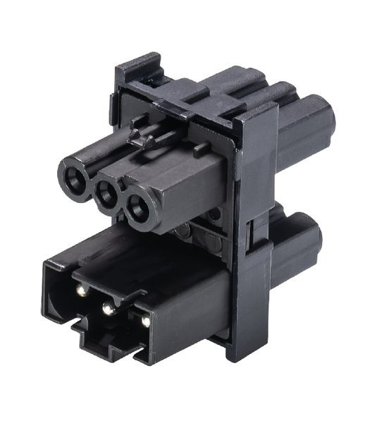 gesis® MINI H-Verteiler, mit Befestigungsmöglichkeit an 07.418.9153.1, Polzahl 3, Bemessungsspannung 250 V, Bemessungsstrom 16 A, Anzahl der Eingänge 1, Anzahl der Ausgänge 3, Codierfarbe / Kontakteinsatz schwarz