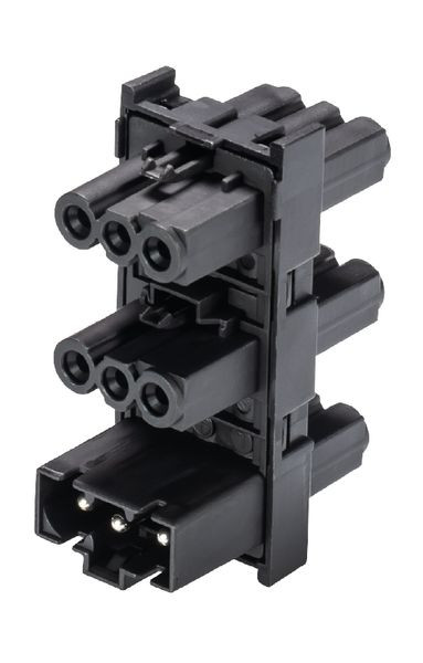 gesis® MINI HH-Verteiler, mit Befestigungsmöglichkeit an 07.418.9253.1, Polzahl 3, Bemessungsspannung 250 V, Bemessungsstrom 16 A, Anzahl der Eingänge 1, Anzahl der Ausgänge 5, Codierfarbe / Kontakteinsatz schwarz