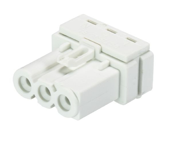 gesis® MINI Geräteanschluss, Lötteil, vertikal ohne Befestigungsflansch, Polzahl 3, Ausführung Buchse, Anschlussart Lötanschluss, Bemessungsspannung 250 V, Bemessungsstrom 16 A, Codierfarbe / Kontakteinsatz weiß