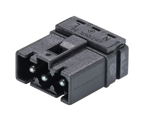 gesis® MINI Geräteanschluss, Lötteil, vertikal ohne Befestigungsflansch, Polzahl 3, Ausführung Stecker, Anschlussart Lötanschluss, Bemessungsspannung 250 V, Bemessungsstrom 16 A, Codierfarbe / Kontakteinsatz schwarz