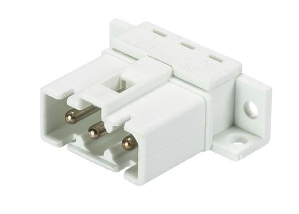 gesis® MINI Geräteanschluss, Lötteil, vertikal mit Befestigungsflansch, Polzahl 3, Ausführung Stecker, Anschlussart Lötanschluss, Bemessungsspannung 250 V, Bemessungsstrom 16 A, Codierfarbe / Kontakteinsatz weiß