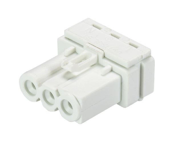 gesis® MINI Geräteanschluss, Lötteil, horizontal ohne Befestigungsflansch, Polzahl 3, Ausführung Buchse, Anschlussart Lötanschluss, Bemessungsspannung 250 V, Bemessungsstrom 16 A, Codierfarbe / Kontakteinsatz weiß