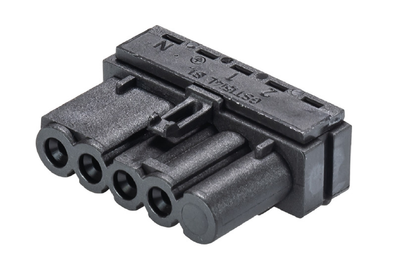 GST15i4 Geräteanschluss, Lötteil, vertikal ohne Befestigungsflansch, im 5-poligen Gehäuse, Polzahl 4, Ausführung Buchse, Anschlussart Lötanschluss, Bemessungsspannung 250 V / 400 V, Bemessungsstrom 16 A, Codierfarbe / Kontakteinsatz schwarz