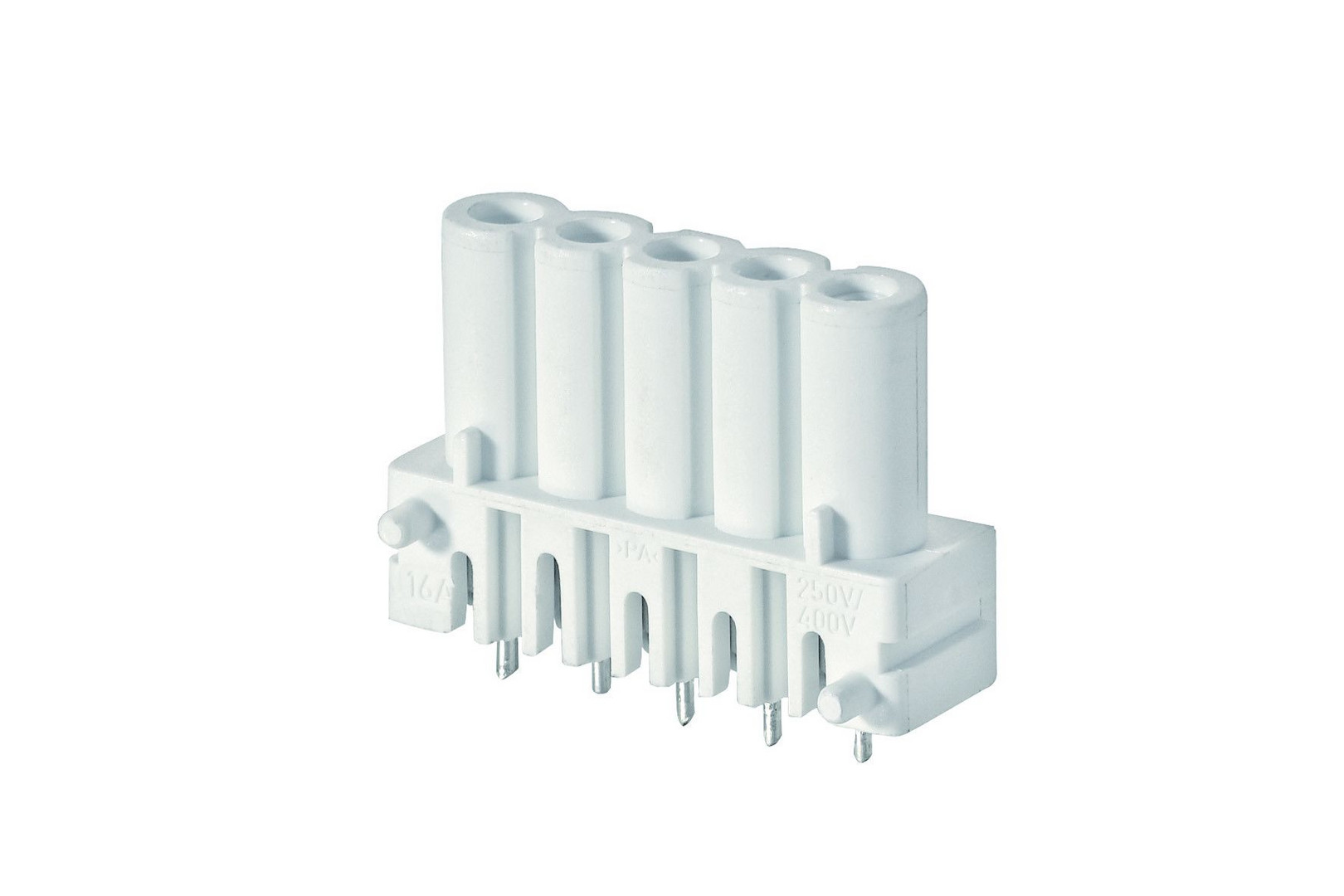 GST15i5 Geräteanschluss, Lötteil, vertikal ohne Befestigungsflansch, Polzahl 5, Ausführung Buchse, Anschlussart Lötanschluss, Bemessungsspannung 250 V / 400 V, Bemessungsstrom 16 A, Codierfarbe / Kontakteinsatz pastellblau