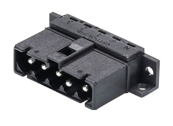 gesis® MINI Geräteanschluss, Lötteil, vertikal mit Befestigungsflansch, Polzahl 5, Ausführung Stecker, Anschlussart Lötanschluss, Bemessungsspannung 250 V / 400 V, Bemessungsstrom 16 A, Codierfarbe / Kontakteinsatz schwarz