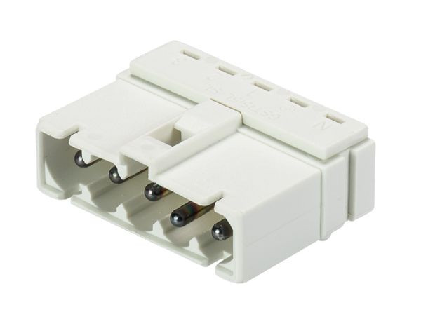 gesis® MINI Geräteanschluss, Lötteil, horizontal ohne Befestigungsflansch, Polzahl 5, Ausführung Stecker, Anschlussart Lötanschluss, Bemessungsspannung 250 V / 400 V, Bemessungsstrom 16 A, Codierfarbe / Kontakteinsatz weiß