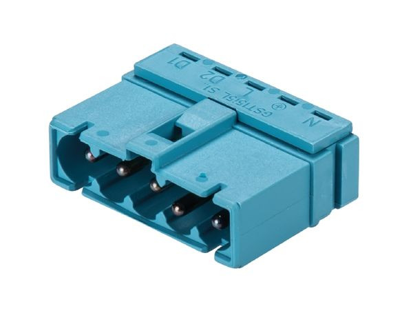 gesis® MINI Geräteanschluss, Lötteil, horizontal ohne Befestigungsflansch, Polzahl 5, Ausführung Stecker, Anschlussart Lötanschluss, Bemessungsspannung 250 V / 400 V, Bemessungsstrom 16 A, Codierfarbe / Kontakteinsatz pastellblau