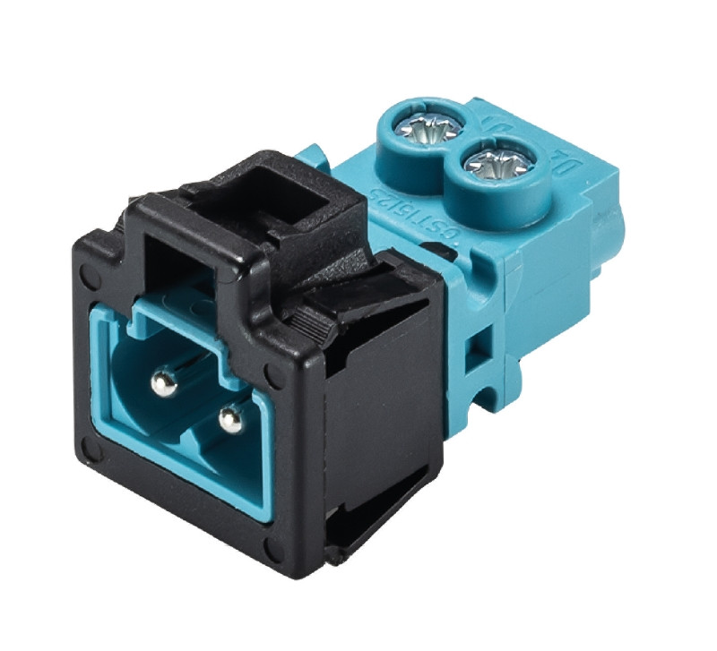 GST15i2 Geräteanschluss, Snap-In, Materialstärke des Gehäuses 0,5 - 1,5 mm, Polzahl 2, Ausführung Stecker, Anschlussart Schraubanschluss, Bemessungsspannung 250 V, Bemessungsstrom 6 A, Codierfarbe / Kontakteinsatz pastellblau
