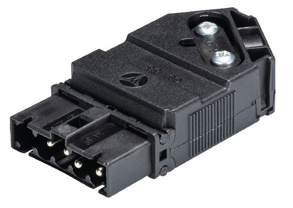 gesis® MINI Steckverbinder, gewinkelt, im 5-poligen Gehäuse, Polzahl 4, Stecker, Anschlussart Schraubanschluss, Bemessungsspannung 250 V / 400 V, Bemessungsstrom 16 A, Kabeldurchmesser 6 - 11,5 mm, Codierfarbe / Kontakteinsatz schwarz