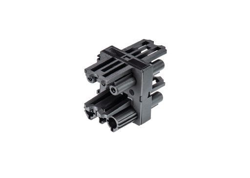 gesis® CLASSIC H-Verteiler, mit Befestigungsmöglichkeit an 07.413.6853.1/0, Polzahl 3, Bemessungsspannung 250 V, Bemessungsstrom 20 A, Anzahl der Eingänge 1, Anzahl der Ausgänge 3, Codierfarbe / Kontakteinsatz schwarz