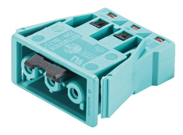 gesis® CLASSIC Geräteanschluss, Snap-In, Materialstärke des Gehäuses: 0,5 - 1,5 mm, Polzahl 3, Ausführung Buchse, Anschlussart Federkraftanschluss, Bemessungsspannung 250 V, Bemessungsstrom 20 A, Codierfarbe / Kontakteinsatz türkisblau