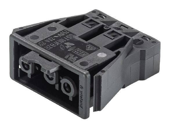 gesis® CLASSIC Geräteanschluss, Snap-In, Materialstärke des Gehäuses: 0,5 - 1,5 mm, Polzahl 3, Ausführung Buchse, Anschlussart Federkraftanschluss, Bemessungsspannung 250 V, Bemessungsstrom 20 A, Codierfarbe / Kontakteinsatz schwarz