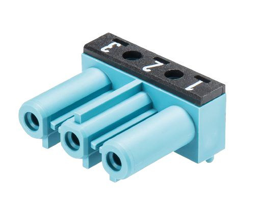 gesis® CLASSIC Geräteanschluss, Lötteil, horizontal ohne Befestigungsflansch, Polzahl 3, Ausführung Buchse, Anschlussart Lötanschluss, Bemessungsspannung 250 V, Bemessungsstrom 20 A, Codierfarbe / Kontakteinsatz pastellblau
