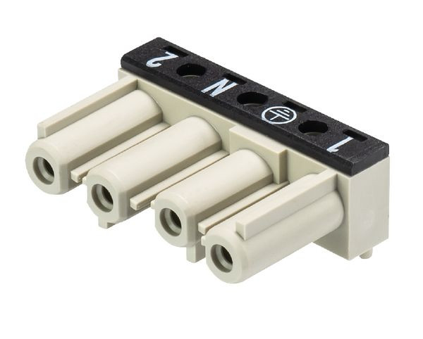 gesis® CLASSIC Geräteanschluss, Lötteil, horizontal ohne Befestigungsflansch, Polzahl 4, Ausführung Buchse, Anschlussart Lötanschluss, Bemessungsspannung 250 V / 400 V, Bemessungsstrom 20 A, Codierfarbe / Kontakteinsatz kieselgrau