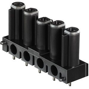 GST18i5 Geräteanschluss, Lötteil, vertikal ohne Befestigungsflansch, Polzahl 5, Ausführung Buchse, Anschlussart Lötanschluss, Bemessungsspannung 50 V, Bemessungsstrom 6 A, Codierfarbe / Kontakteinsatz lichtblau