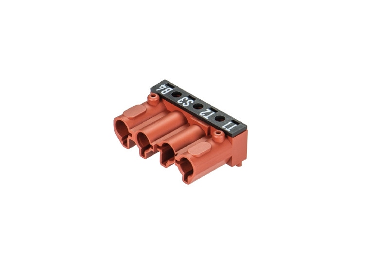 Buchsenteile, 4-polig, Lötanschluß abge- winkelt, mit Montagezapfen, Farbe: rot-braun, Type: ST 18/4 B C H S RTBR