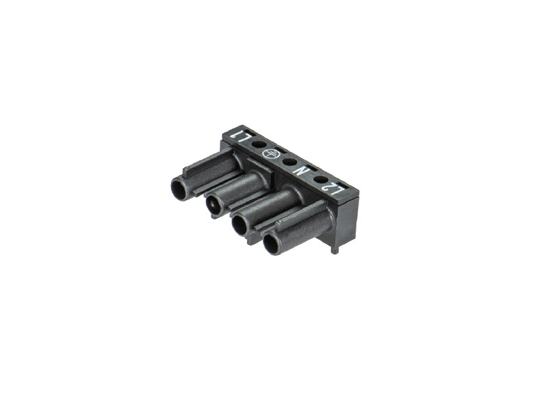Steckerteile, 4-polig, Lötanschluß abge- winkelt, mit Montage-Zapfen, Farbe: schwarz, Type: ST 18/4 S F SW