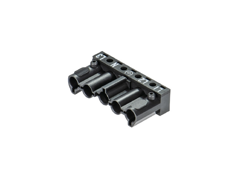 Buchsenteile in Lötausführung, 5-polig, Lötanschluß gerade, ohne Montagezapfen, Farbe: schwarz, Type: ST 18/5 B F1 SW ON