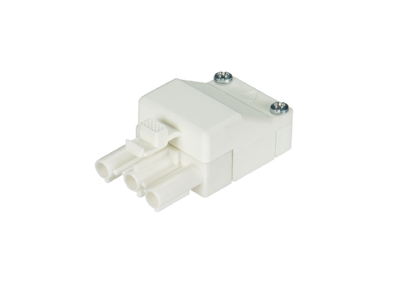 Steckerteile, 3-polig, komplett montiert, mit Zug- entlastung und Verriegelung, Farbe: weiß, Type: ST 18/3S ZEV WS FLM