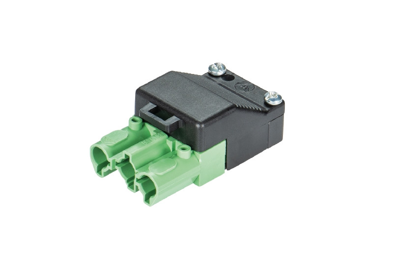 Buchsenteile, 3-polig, komplett montiert, mit Zug- entlastung und Verriegelung, Farbe: Buchsenteil grün / Zugentlastung schwarz, Type: ST18/3B1 C1 ZEV GN RDM