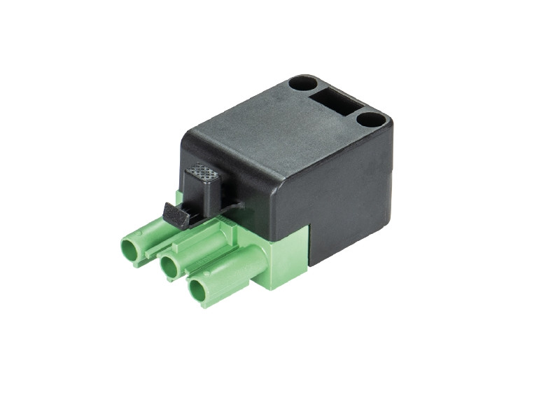 Steckerteile, 3-polig, komplett montiert, mit Zug- entlastung und Verriegelung, Farbe: Steckerteil grün/ Zugentlastung schwarz, Type: St 18/3 S C1 ZEVNGN RDM