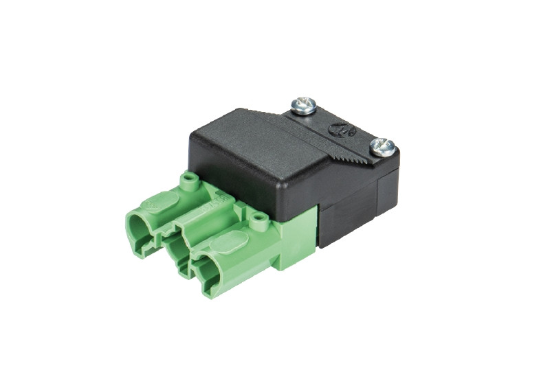 Buchsenteile, 3-polig, komplett unmontiert, mit Zugentlastung, jedoch ohne Verriegelung, Farbe: Buchsenteil grün / Zugentlastung schwarz, Type: ST 18/3B1 C1 ZE GN RD
