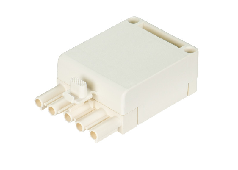 Steckerteile aus glühdrahtbeständigem Material nach IEC 60335-1, Farbe hellelfenbein, in Schraubausführung, mit Zugentlastung und Verriegelung, 5-polig, Type: ST18/5S ZEV N RD