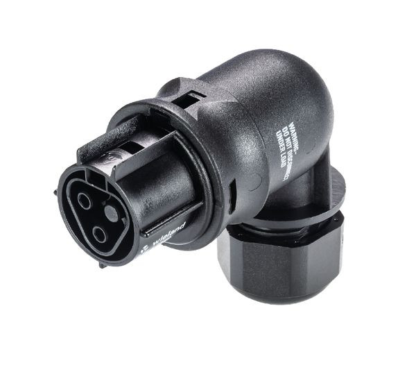 RST® CLASSIC Steckverbinder, gewinkelt 90°, Polzahl 2, Buchse, Anschlussart Federkraftanschluss, Bemessungsspannung 250 V, Bemessungsstrom 20 A, Kabeldurchmesser 6 - 10 mm, Codierfarbe / Kontakteinsatz schwarz