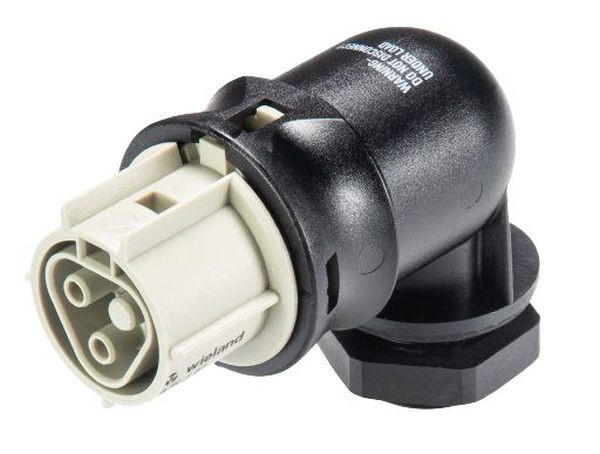 RST® CLASSIC Geräteanschluss, Modular, gewinkelt 90°, M20, Polzahl 2, Ausführung Buchse, Anschlussart Schraubanschluss, Bemessungsspannung 50 V / 120 V, Bemessungsstrom 20 A, Codierfarbe / Kontakteinsatz kieselgrau