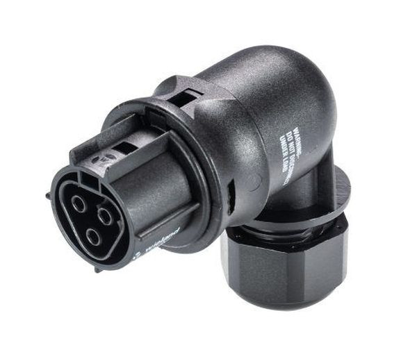 RST20i3 Steckverbinder, gewinkelt 90°, Polzahl 3, Buchse, Anschlussart Federkraftanschluss, Bemessungsspannung 250 V, Bemessungsstrom 20 A, Kabeldurchmesser 10 - 14 mm, Codierfarbe / Kontakteinsatz schwarz