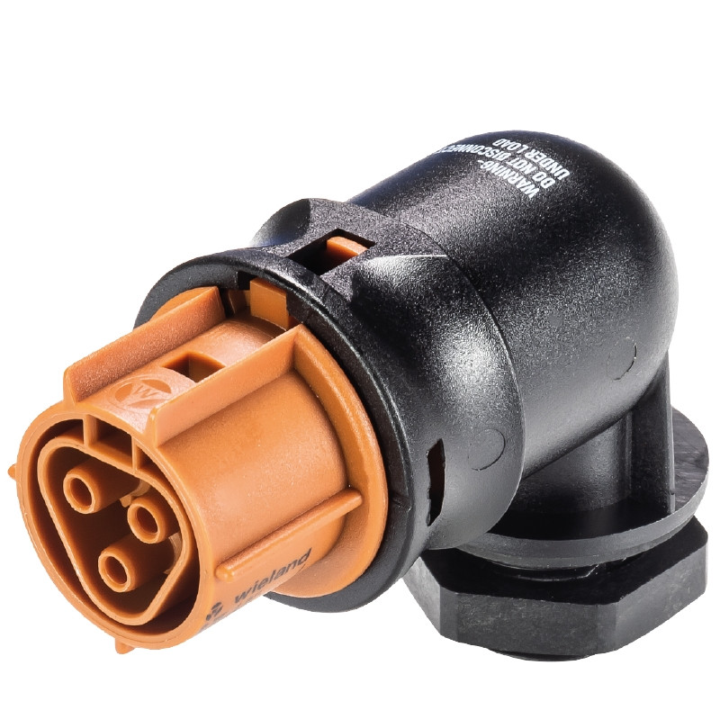 RST20i3 Geräteanschluss, Modular, gewinkelt 90°, M20, Polzahl 3, Ausführung Buchse, Anschlussart Schraubanschluss, Bemessungsspannung 50 V / 120 V, Bemessungsstrom 20 A, Codierfarbe / Kontakteinsatz signalbraun