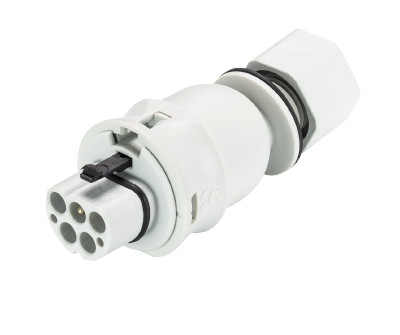 RST20i4 Geräteanschluss, Modular, gewinkelt 7°, M16, Polzahl 4, Ausführung Stecker, Anschlussart Schraubanschluss, Bemessungsspannung 250 V / 400 V, Bemessungsstrom 20 A, Codierfarbe / Kontakteinsatz lichtgrau