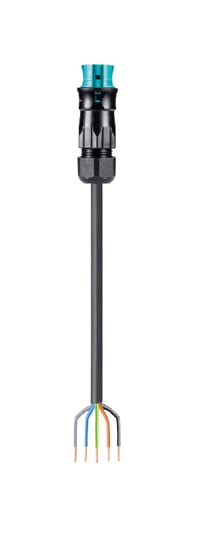 RST® CLASSIC Anschlussleitung, Buchse - freies Leitungsende, Polzahl 5, Bemessungsspannung 250 V, Bemessungsstrom 20 A, Leitungstyp H05VV-F, Brandklasse Eca, Gesamtlänge 6 m, Leiter-Nennquerschnitt 4 mm², Codierfarbe / Kontakteinsatz türkisblau
