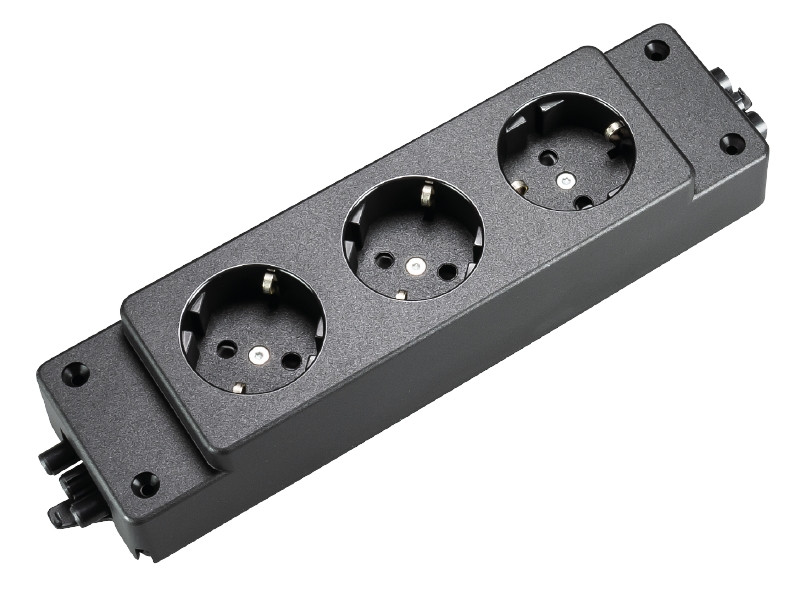 Schukosteckdosenleiste 3-fach, schwarz, Eingang und Ausgang GST18i3; mit Verriegelung