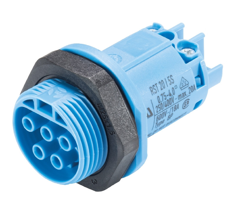 RST20i5 ATEX Geräteanschluss, Standard, gerade, M25, Polzahl 5, Ausführung Buchse, Anschlussart Schraubanschluss, Bemessungsspannung 250 V / 400 V, Bemessungsstrom 20 A, Codierfarbe / Kontakteinsatz lichtblau