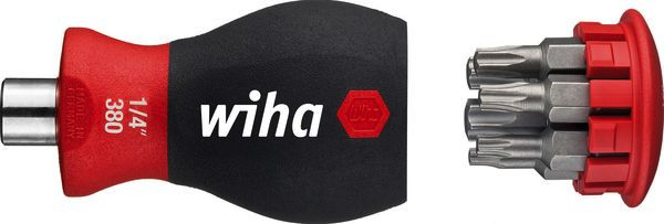 | Kurzbeschreibung | Wiha Schraubendreher mit Bit Magazin magnetisch TORX® mit 6 Bits, Stubby, 1/4 Zoll (33743) |