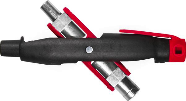 Steigert Ihre Effizienz: Alle Schlüssel und Profile in einem kompakten und leichten Werkzeug integriert. Extra: Ansteck-Clip mit Schlüssel für Heizungsentlüftungsventile.