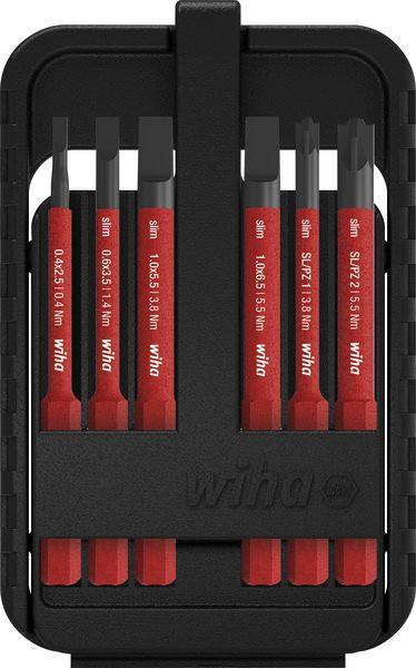 Erleichtert die Handhabung: Kompakte slimBit Box mit optimaler Einsicht auf die Profile und einfachem Zugriff. Bietet Ihnen vollen Schutz: Jedes Werkzeug einzeln bei 10.000 V AC getestet und zugelassen für 1.000 V AC. Erhöht Ihre Sicherheit: Wiha slimBits gewährleisten einen guten und geschützten Zugang zu tief liegenden Schrauben. Anwendung: Geeignet zum Verschrauben im Bereich von spannungsführenden Teilen bis 1.000 V AC, insbesondere im mobilen Einsatz. Um tiefliegende Schrauben erreichen zu können, ist der Klingendurchmesser bei herkömmlichen Elektrikerschraubendrehern häufig zu groß. Das Entfernen der Isolierung ist jedoch unzulässig und gefährdet zudem die eigene Sicherheit. Bei der speziell für elektrische Anwendungen entwickelten Wiha slimTECHNOLOGY wurde die Schutzlisolation in die Klinge intergriert, um bis zu 33% schlankere Klingen zu ermöglichen. So können mit den slimBits auch tiefliegende Schraub- und Federelemente mühelos erreicht werden. Die isolierten slimBits werden gemäß der internationalen Norm IEC 60900 einer Stückprüfung unterzogen und ermöglichen ein sicheres Arbeiten im Bereich von spannungsführenden Teilen bis 1.000 V AC. Zudem sind die slimBits in einer smarten Bitbox verstaut, welche eine optimale Einsicht auf die Schraubprofile gewährt. Die 6 mm slimBits sind nur im speedE®, slimVario® oder TorqueVario®-S electric Werkzeugen zu verwenden. Die 6 mm slimBits sind nur im speedE®, slimVario® oder TorqueVario®-S electric Werkzeugen zu verwenden. Geprüft gemäß IEC 60900. Inhalt: 1x Bit slimBit electric Schlitz 2,5 mm x 75 mm (34578) 1x Bit slimBit electric Schlitz 3,5 mm x 75 mm (41159) 1x Bit slimBit electric Schlitz 5,5 mm x 75 mm (34581) 1x Bit slimBit electric Schlitz 6,5 mm x 75 mm (34582) 1x Bit slimBit electric PlusMinus/Pozidriv SL/PZ1 x 75 mm (34589) 1x Bit slimBit electric PlusMinus/Pozidriv SL/PZ2 x 75 mm (34590) 1x slimBit-Box