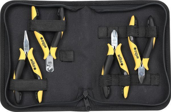 | Kurzbeschreibung | Wiha Zangen Set Professional ESD Seiten-, Schrägvornschneider, Flachrundzange 5-tlg. inkl. Werkzeugmappe (33507) |