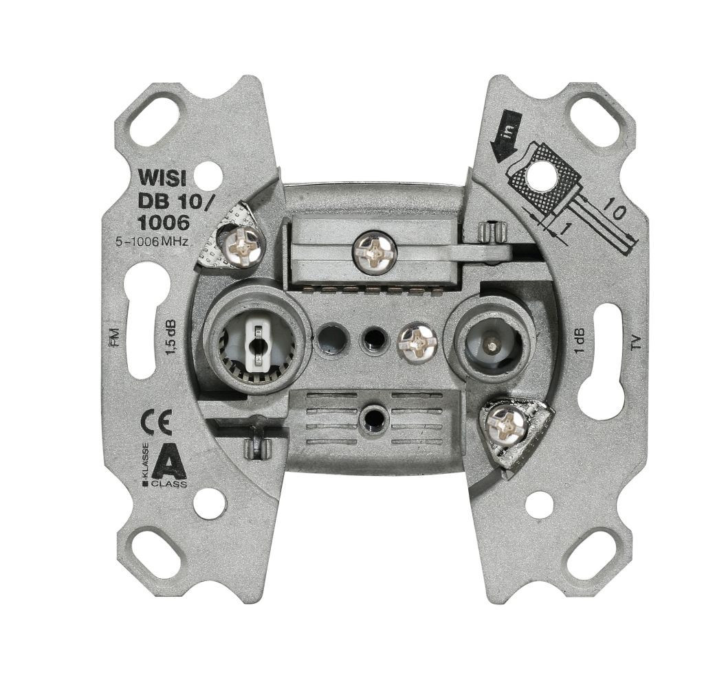 Die DB10 1006 ist eine TER-Stichdose mit Filter. Sie hat eine geringe Anschlussdaempfung bei TV wie FM 0,5/1,5 dB. Das Gehaeuse bietet eine sehr hohe Stabilitaet und gewaehrleistet hohe Schirmungseigenschaften (Klasse A). Dank flacher Bauweise ist sie platzsparend und durch IEC- Buchse/Stecker ist ein sicherer Anschluss gewaehrleistet.