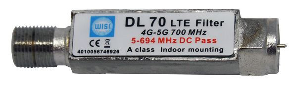 Das DL70 LTE/5G-Filter schuetzt nachfolgende Verteilstrukturen vor stoerenden Mobilfunksignalen. Durchlassbereich des Filters mit niedriger Einfuegedaempfung bis 694 MHz (Kanal 48). Mit einer sehr hohen Sperrtiefe ab 733 MHz unterdrueckt das DL70 Filter moegliche Stoerungen effektiv und bereits kurz nach dem terrestrischen Empfangsbereich. Eine integrierte F-Buchse und ein F-Stecker ermoeglichen eine einfache "inline"-Montage.