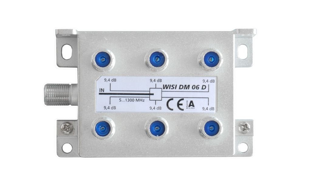 Der DM06 D ist ein 6-fach Verteiler fuer die symmetrische Aufteilung von Kabelsignalen. Mit einem Frequenzbereich bis 1,3 GHz ist der Verteiler bestens fuer DOCSIS 3.1 Anwendungen geeignet. Das weißbronze-beschichtete Gehaeuse ermoeglicht sehr hohe Schirmungseigenschaften der Klasse A (+10 dB) und gewaehrleistet eine stoerungsfreie Uebertragung der Signale im Empfangs und Verteilsystem. Aufgrund der stetig steigenden multimedialen Inhalte ist eine hohe Intermodulationsfestigkeit sehr wichtig, der Verteiler DM06 D erfuellt hierfuer die Anforderungen gemaeß EN 60728-4.