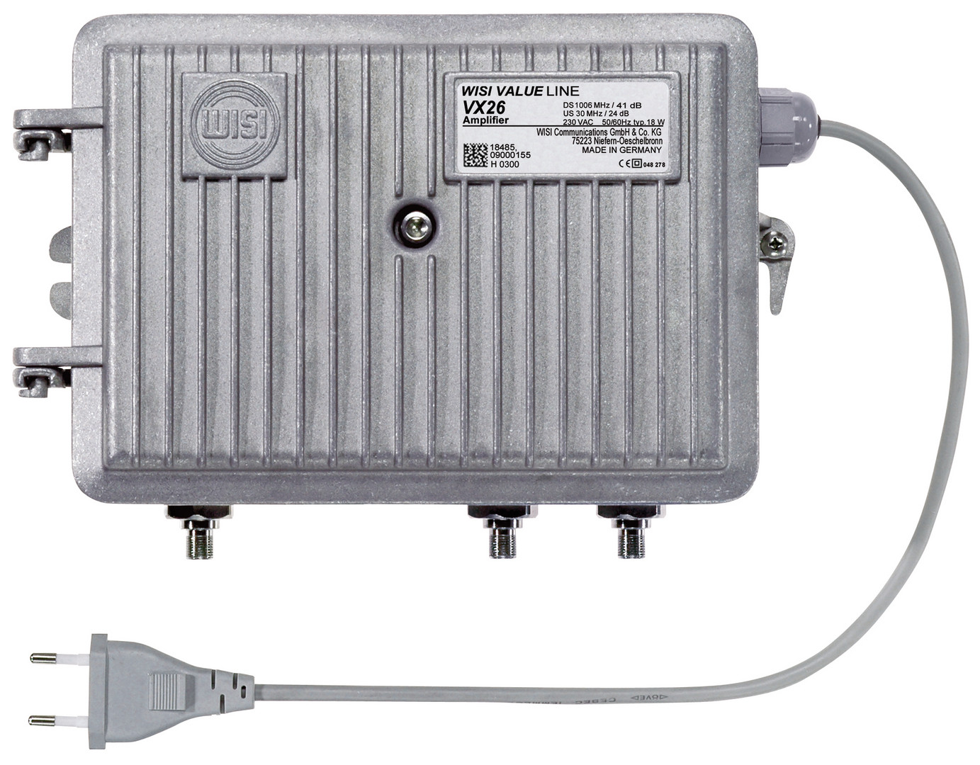 Hausanschlussverstärker, 41 dB, ortsgespeist, 85 bis 1006 MHz, Vorweg 41 dB, Rückweg 24 dB