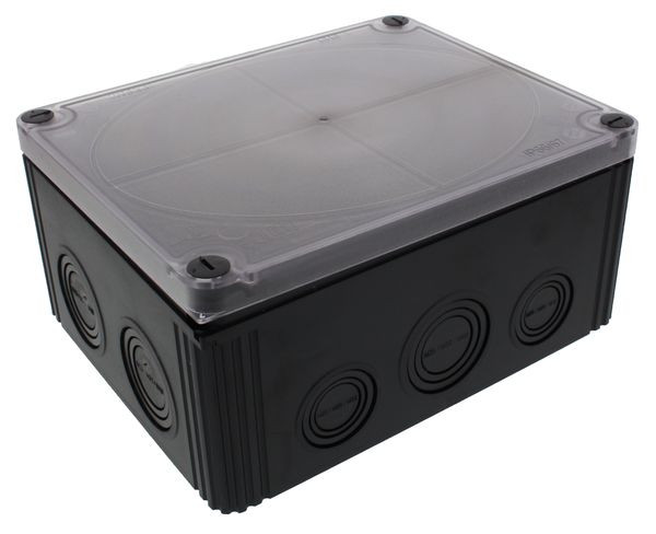 | Kurzbeschreibung | Abzweigkasten 16mm², schwarz, klarer, flacher Deckel |