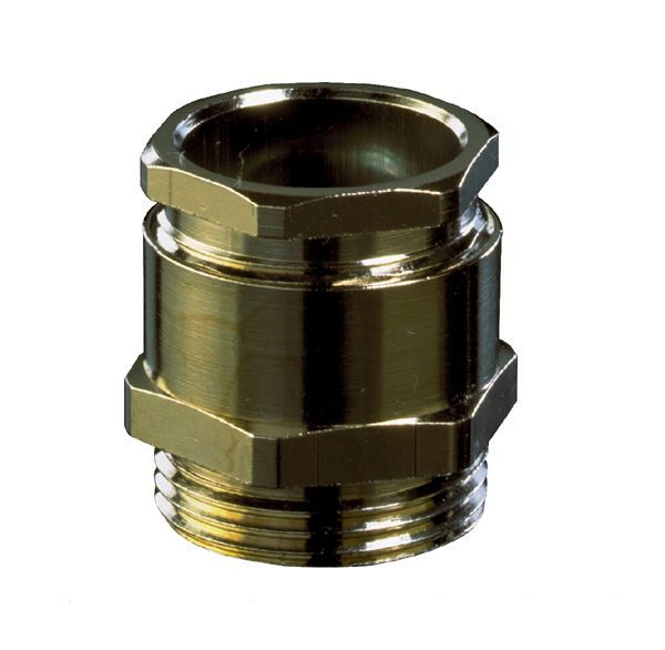 Messing Kabelverschraubung mit 6kt. Zwischenstutzen und ausschneidbarem Dichtring.