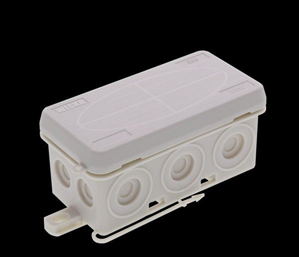 Feuchtraum-Kabelabzweigkasten mit vielfältigen Befestigungsmöglichkeiten. Auch geeignet für die geschützte Außeninstallation. Das weiche Kastengehäuse gewährleistet durch seine Flexibilität eine gute Befestigung auch auf unebenen Untergründen. Dennoch bleibt der Kasten durch seinen harten Deckel formstabil und ist fest und sicher verschlossen. Durch die Möglichkeit der Deckelplombierung kann dieser auch bei einer Überkopfmontage nicht verloren gehen. Die KA-Serie ist in verschiedenen Größen und Farben lieferbar.