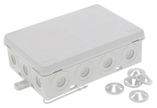 | Kurzbeschreibung | Feuchtraumdose, 6mm², mit schraublosen Klemmen, lichtgrau |