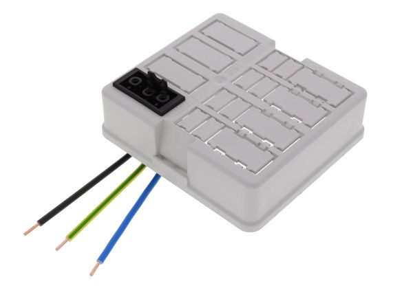 | Kurzbeschreibung | Deckel für Abzweigkasten 6mm², vorverdrahtet mit 1x 3-poliger Buchse |