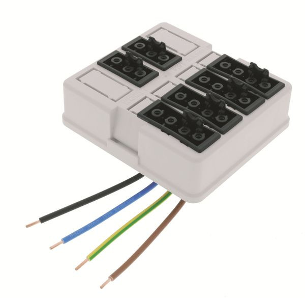 Durch die Verwendung von vorinstallierten Installationssteckverbindern ist keine aufwendige Verdrahtung im Innenraum erforderlich. Der Anschluss von Leuchten, Jalousien, Steckdosen und Schaltern an die Stromversorgung erfolgt zeitsparend und effizient über Steckmöglichkeiten im Deckel. Acht Steckplätze erlauben vielfältige Installationssteckverbinder-Kombinationen. Je nach Bedarf können 3-, 4- und 5- polige Installationssteckverbinder der gängigen Hersteller individuell eingesetzt oder vorverdrahtet geliefert werden. Die Steckplätze sind einfach per Hand auszubrechen. Der WHK-Abzweigkasten kann einfach und schnell per Dübel oder Schrauben befestigt werden. Integrierte Aussparungen auf der Rückseite ermöglichen ausserdem eine einfache Klick-Montage. Eine universell einsetzbare Montageplatte sowie ein M 20-Gewinde auf der Rückseite sorgen für zusätzliche Variabilität in der Montage. Leicht abnehmbarer Deckel mit praktischem Schnappverschluss. Acht Ausbrechöffnungen erlauben eine mühelose Kabeleinführung. Diese kann über die Anschlussstutzen KRASS und KRASM erfolgen. Sie sind mit einer Klick-Verbindung oder einem Gewindeanschluss erhältlich. Ausserdem ist die Befestigung von Kabelverschraubungen mit Gegenmuttern möglich.