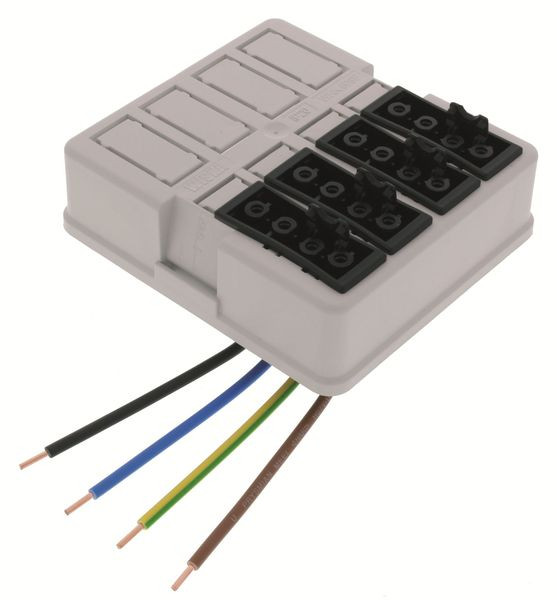 | Kurzbeschreibung | Deckel für Abzweigkasten 6mm², vorverdrahtet mit 4x 4-poliger Buchse |